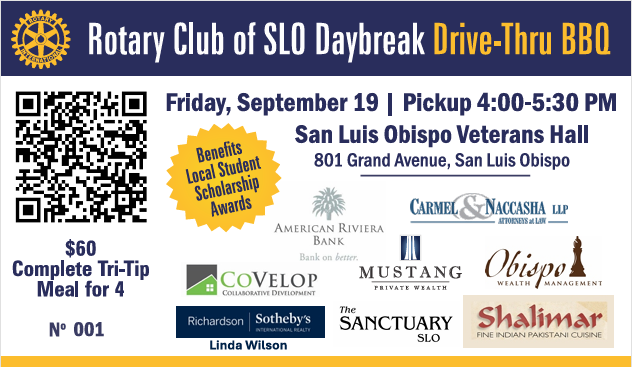 The Rotary Club of SLO Daybreak continues to invest in the San Luis Obispo community through our service and contributions. We extend our sincere appreciation to all who have supported our efforts this past year. For more information visit www.facebook.com/slodaybreak or www.slorotarygolf.org